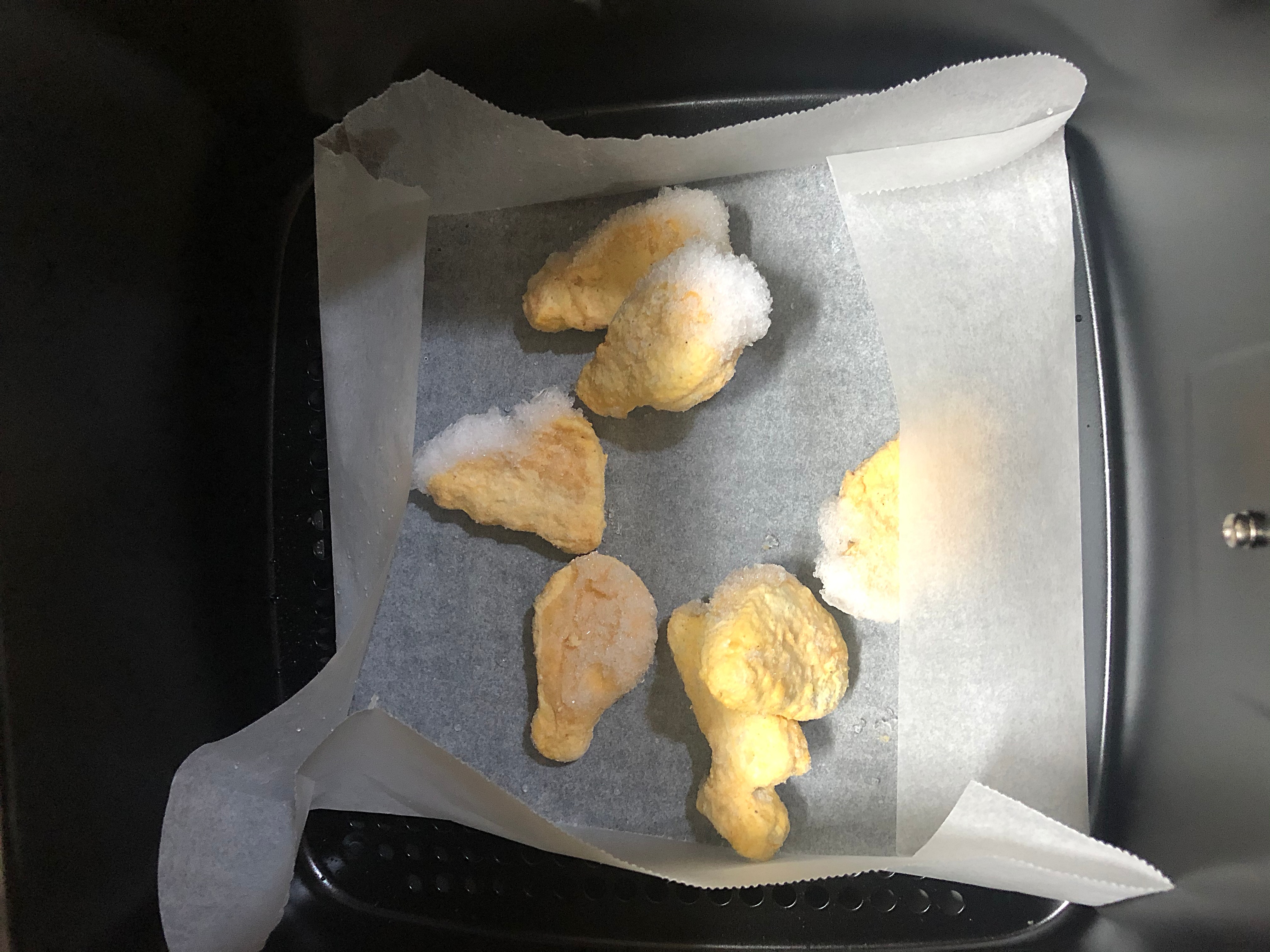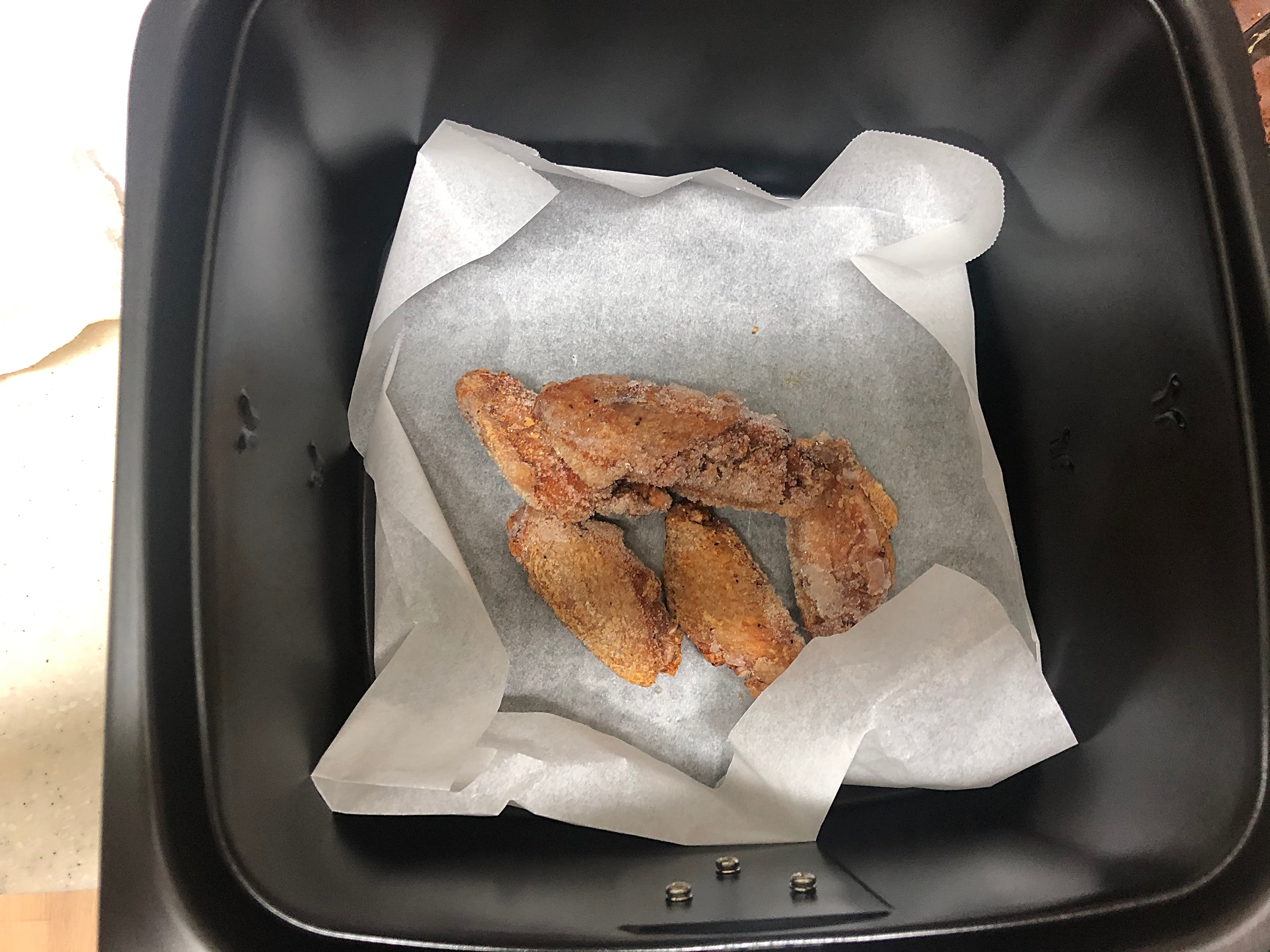 해동 안 시키고 꽁꽁 얼어붙은 닭윙 5개.